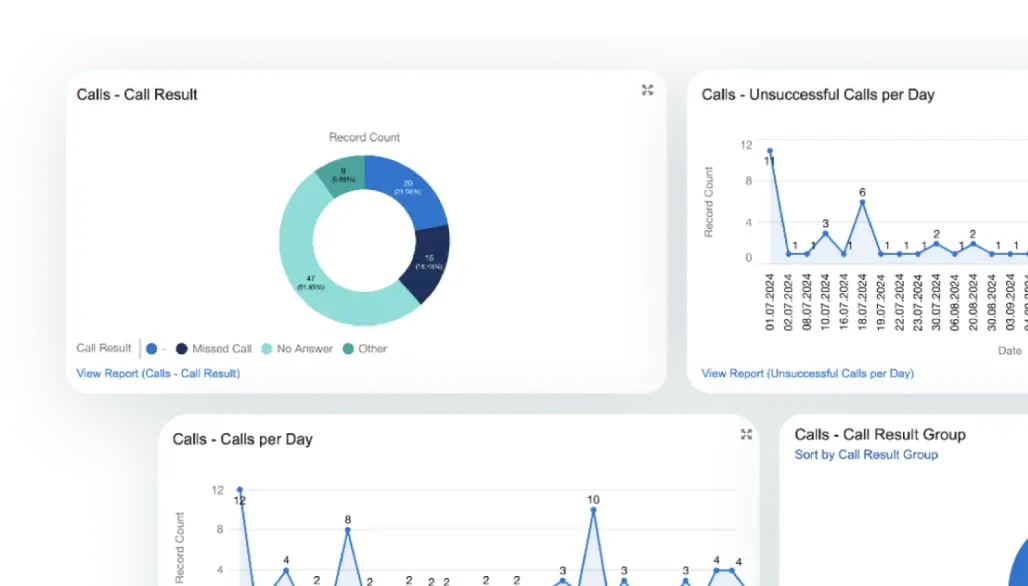 Track call volume, duration, missed calls, conversation rates, and more inside Salesforce with prebuilt dashboards. Easily spot trends, refine strategies, and analyze performance by rep, campaign, or segment.